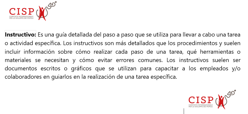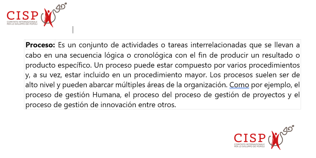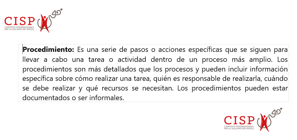 Los términos "procesos", "procedimientos" e "instructivos" se utilizan comúnmente en el ámbito organizacional para describir distintos niveles de detalle en las actividades y tareas necesarias para la elaboración de productos y/o servicios requeridos por un grupo de interés /Clientes/beneficiarios/colaboradores.
